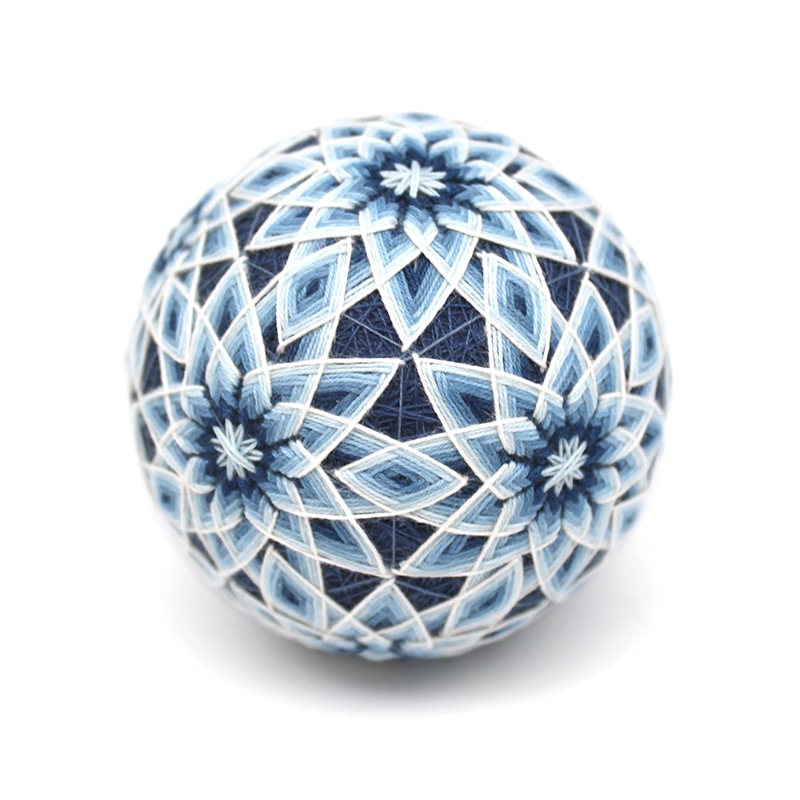 香川に昔から伝わる讃岐の手まりです。木綿糸を丁寧に自然の草木から染めて作られます。何種類ものかがり模様や個性あふれる色合いが魅力です。全て手仕事ですので、世界にひとつだけの手まりをお楽しみください。
