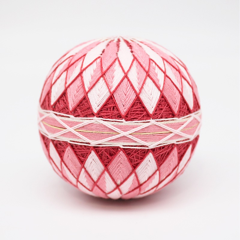 香川に昔から伝わる讃岐の手まりです。木綿糸を丁寧に自然の草木から染めて作られます。何種類ものかがり模様や個性あふれる色合いが魅力です。全て手仕事ですので、世界にひとつだけの手まりをお楽しみください。
