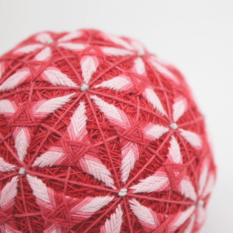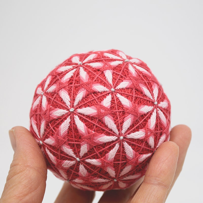 香川に昔から伝わる讃岐の手まりです。木綿糸を丁寧に自然の草木から染めて作られます。何種類ものかがり模様や個性あふれる色合いが魅力です。全て手仕事ですので、世界にひとつだけの手まりをお楽しみください。