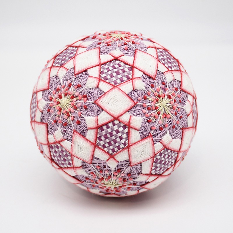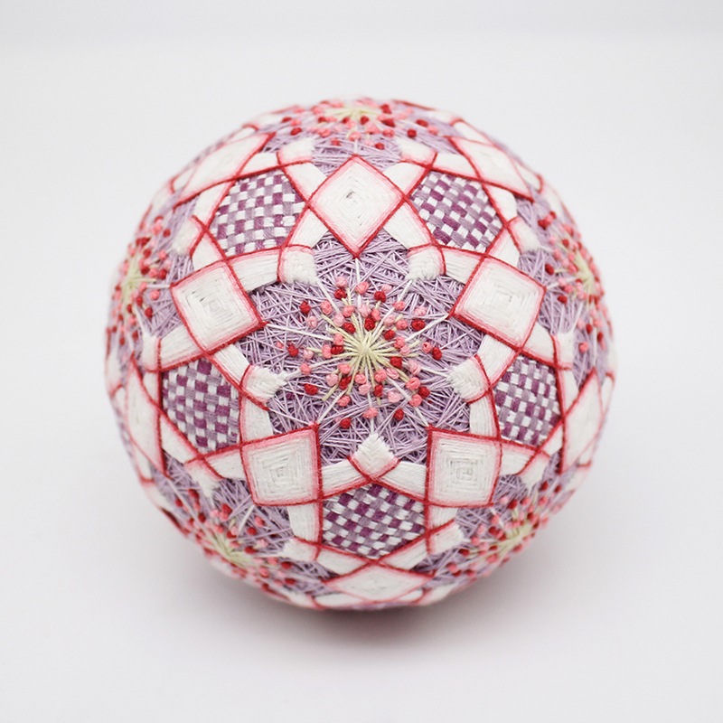 香川に昔から伝わる讃岐の手まりです。木綿糸を丁寧に自然の草木から染めて作られます。何種類ものかがり模様や個性あふれる色合いが魅力です。全て手仕事ですので、世界にひとつだけの手まりをお楽しみください。