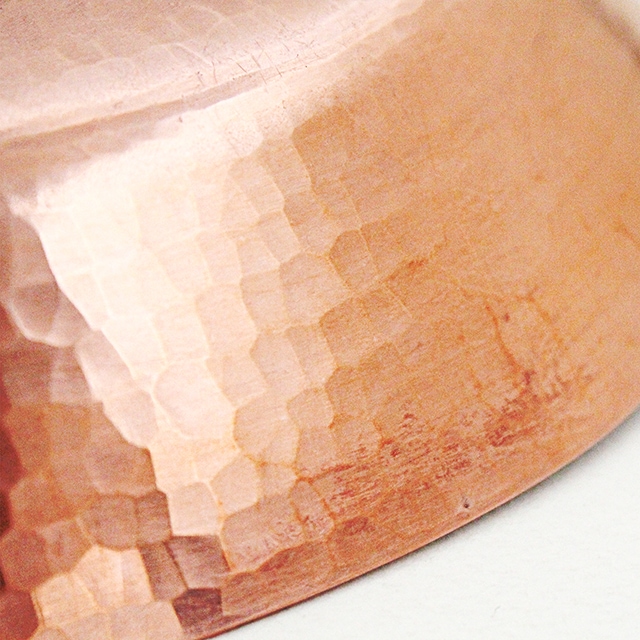 銅板に熱を加え、何度も繰り返したたき人の力で仕上げます。