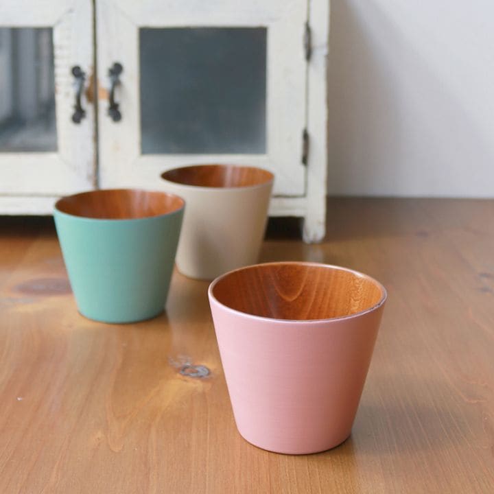 落ち着いた色味が使いやすい漆器のカラーカップです。