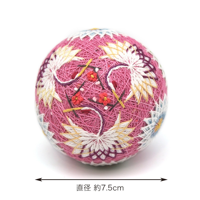 香川に昔から伝わる讃岐の手まりです。木綿糸を丁寧に自然の草木から染めて作られます。何種類ものかがり模様や個性あふれる色合いが魅力です。全て手仕事ですので、世界にひとつだけの手まりをお楽しみください。