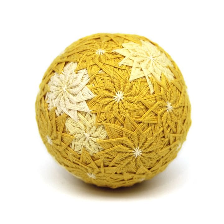 香川に昔から伝わる讃岐の手まりです。木綿糸を丁寧に自然の草木から染めて作られます。何種類ものかがり模様や個性あふれる色合いが魅力です。全て手仕事ですので、世界にひとつだけの手まりをお楽しみください。