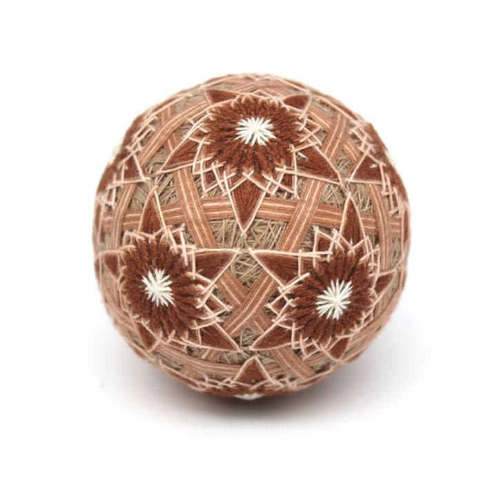 香川に昔から伝わる讃岐の手まりです。木綿糸を丁寧に自然の草木から染めて作られます。何種類ものかがり模様や個性あふれる色合いが魅力です。全て手仕事ですので、世界にひとつだけの手まりをお楽しみください。