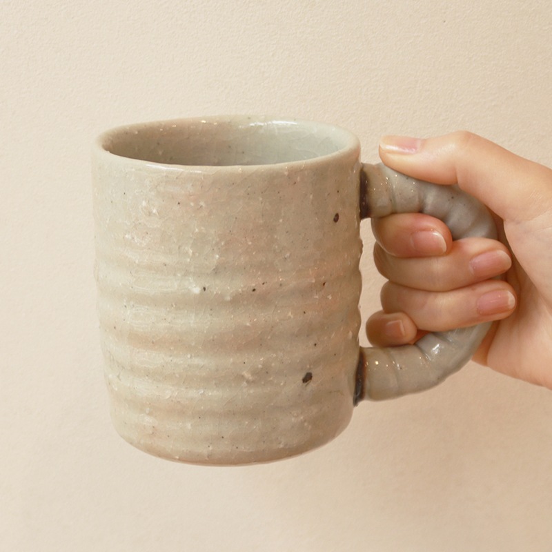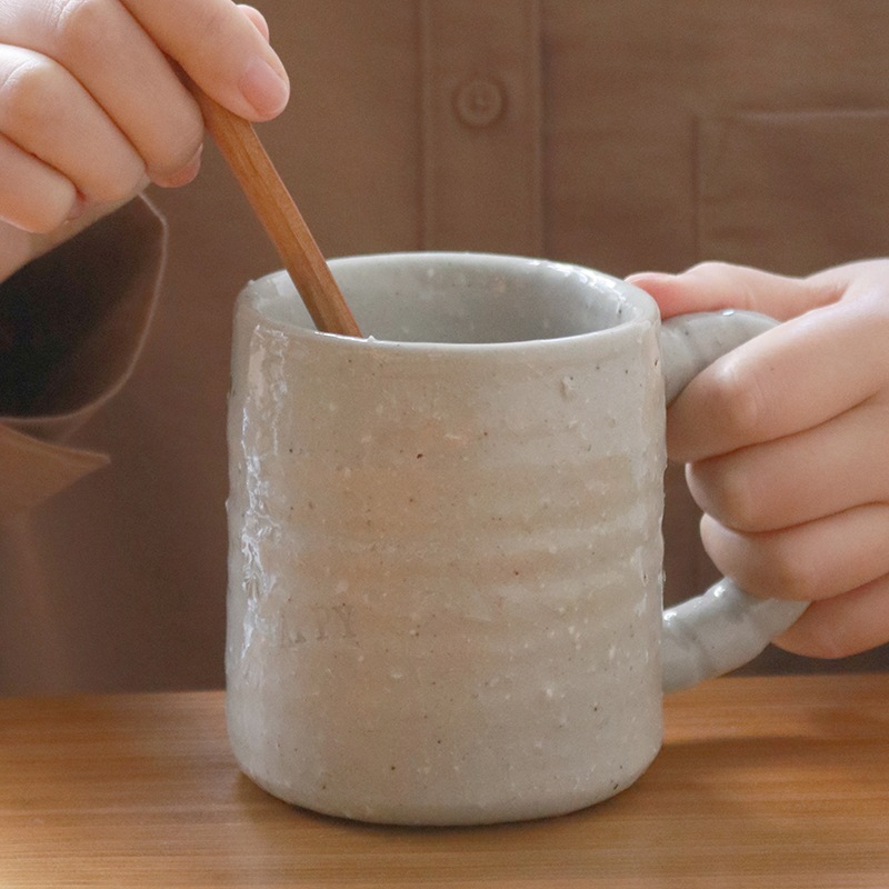 土の風合いを生かした、味わい深い作品を制作している貴志 勉さんのマグカップです。しっかりとした大きめのカップで、一度にたくさん飲みたいという方におすすめです。