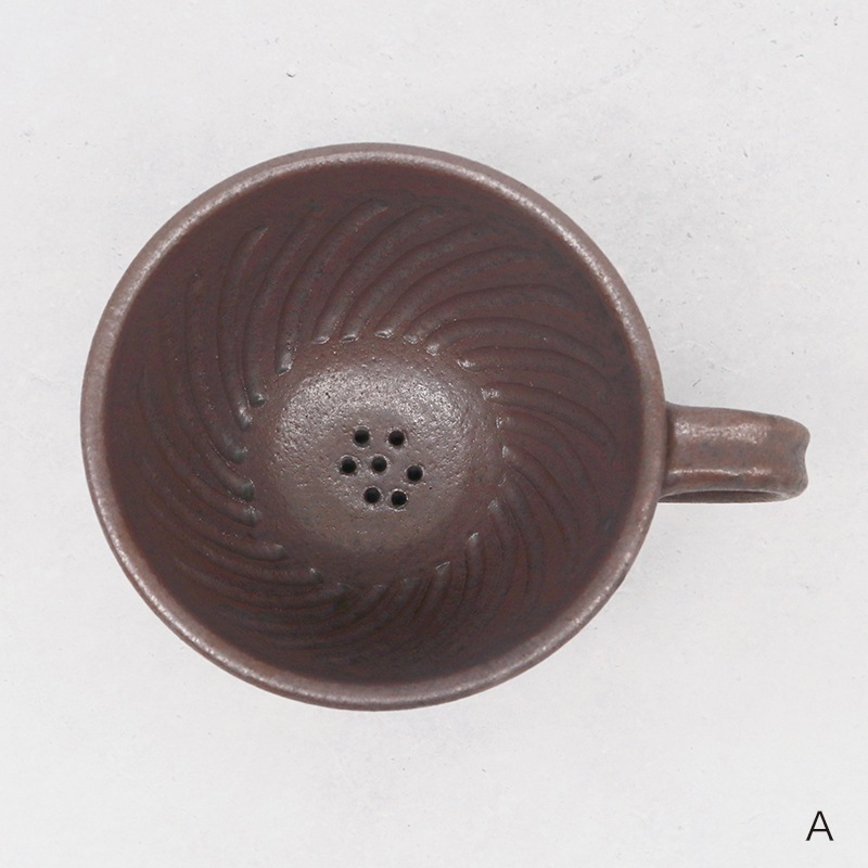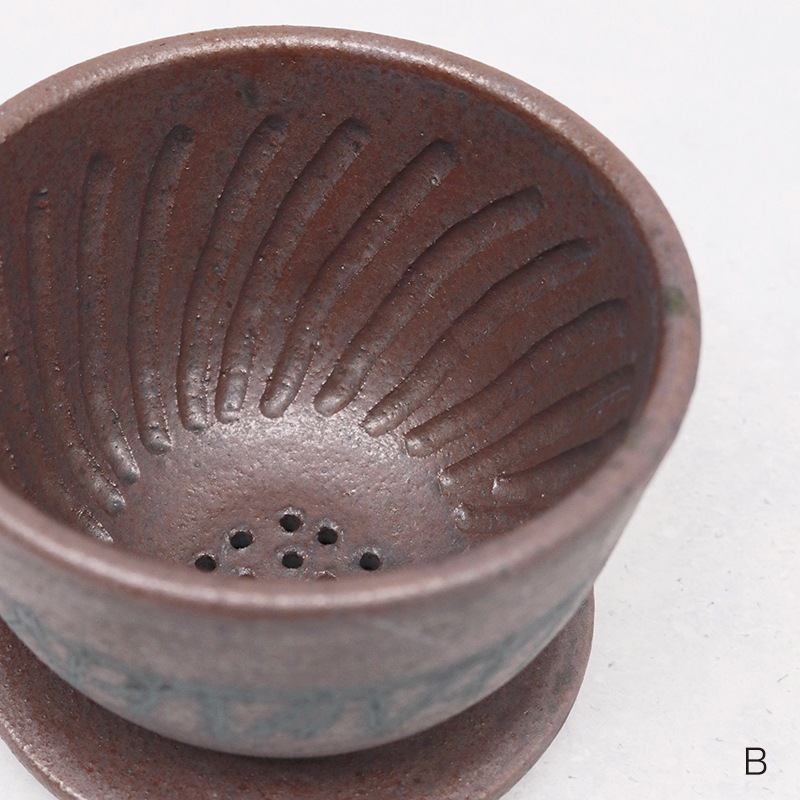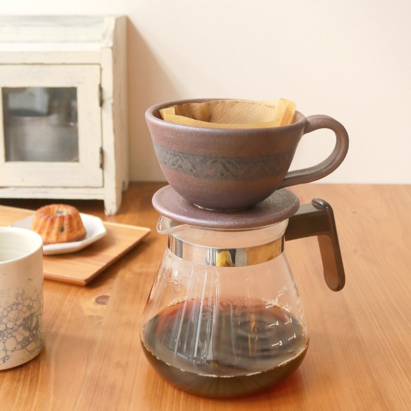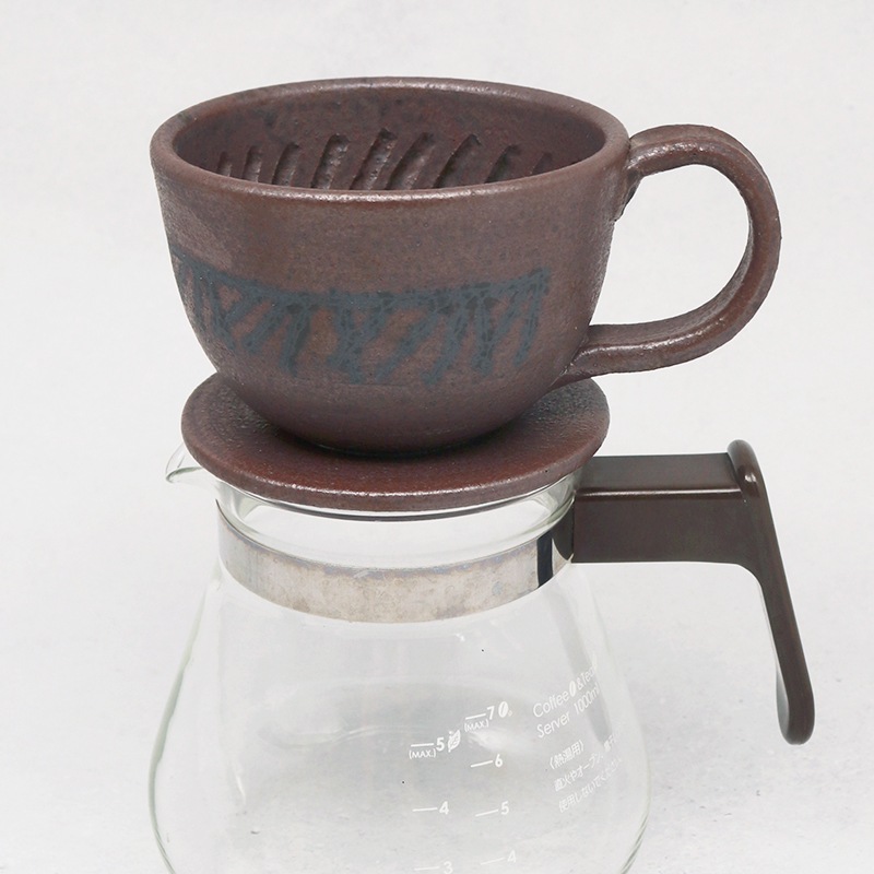 土の風合いを生かした、味わい深い作品を制作している貴志 勉さんのドリッパーです。陶器は熱伝導率が低いため、温まりにくく冷めにくい材質です。 一度温まればドリッパー内を外の冷気から守って高温状態を保ってくれるので、冬の季節や屋外で重宝しますね。