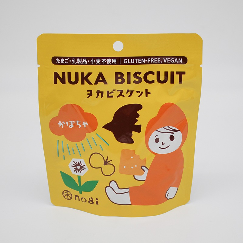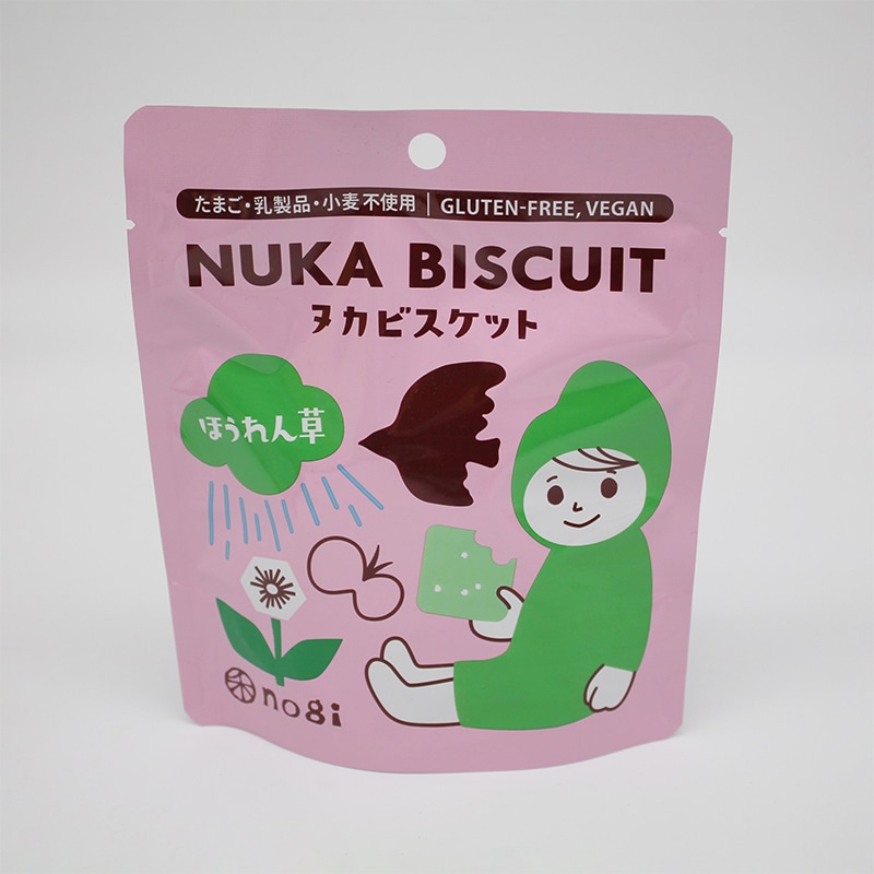 ヌカビスケットは、グルテンフリー。卵・乳製品・小麦粉不使用で腹持ちもいい、年代を問わず嬉しいおやつです。かぼちゃ、ほうれん草、きなこの3種類を取り扱っています。サクサク美味しい食感をお楽しみください。
