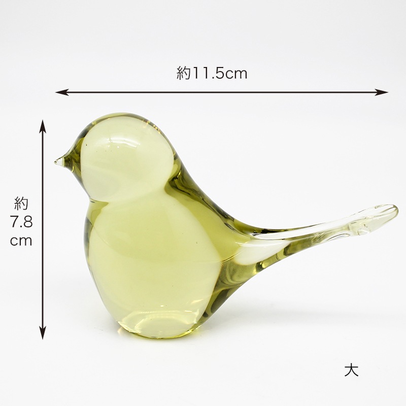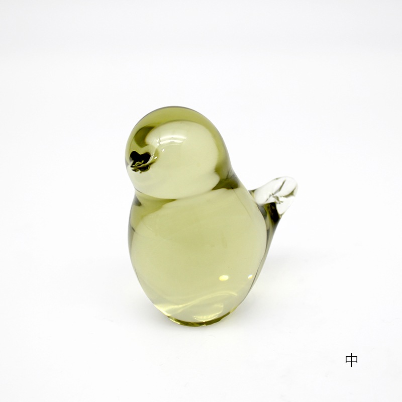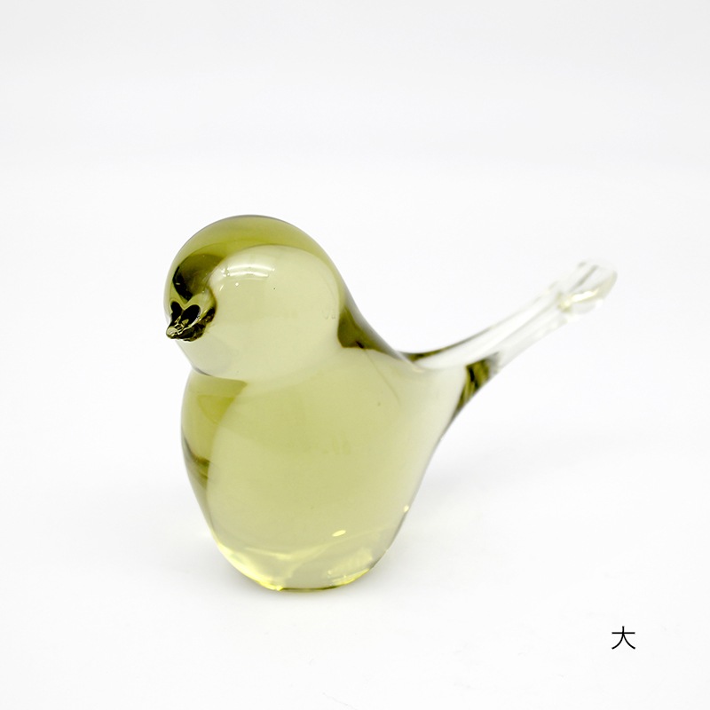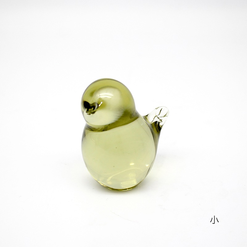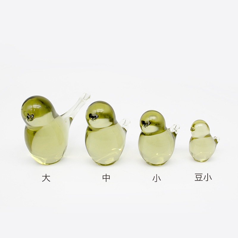 ガラス作家・杉山利恵氏が作る「oliveのとりさん」。オリーブの灰を混ぜたガラスは、一つひとつに個性豊かな表情が宿ります。