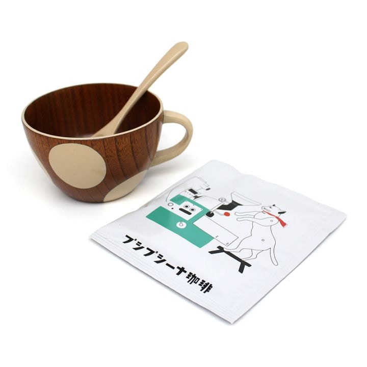 漆 水玉片手カップとスプーン(白&黒 2個セット)